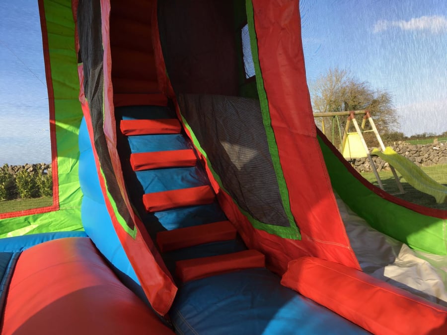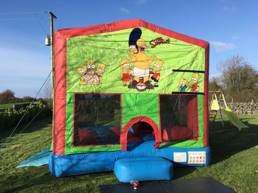 The Simpsons Combi Castle from Ronnies Bouncy Castles Galway is a vibrant family-theme bouncy castle with a spacious bounce area and a 7ft enclosed slide. It combines vivid colours, excellent airflow and clear internal visibility for top-class safety. Perfect for mixed-age parties and outdoor events — boys and girls love the Simpsons theme. 🎈