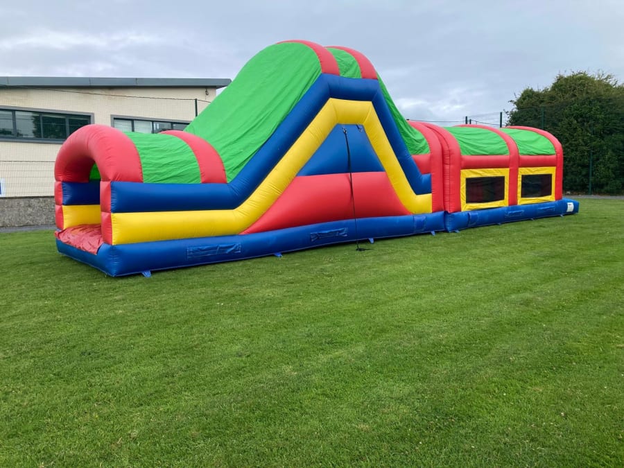 Ronnies Bouncy Castles Adrenaline Rush Obstacle Course in Galway delivers non-stop fun and high-energy action for communions, confirmations and parties. 🚀 This enclosed high slide obstacle course combines an 8.2ft slide, climbing wall, tunnels, Bish/Bash and multiple bouncy zones to keep kids active and excited. Safe, eye-catching, and built for big smiles.